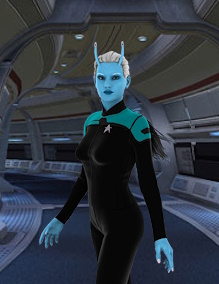 | Service Record | She enlisted in Starfleet at 18. Normally, someone comes out of training with the rank of Crewman Recruit (E1) or Crewman Apprentice (E2), but a part of the recruitment process she got a promotion by having a friend enlist with her. During training she also earned a meritorious promotion and graduated as at full Crewman (E3). That promotion is what got her assigned to a starship for her first assignment while her other friends where on planetary or Starbase assignments. 2395 - Starfleet recruit training 2396 to 2399 - USS Phoenix 2400 to Present - USS Valkyrie |